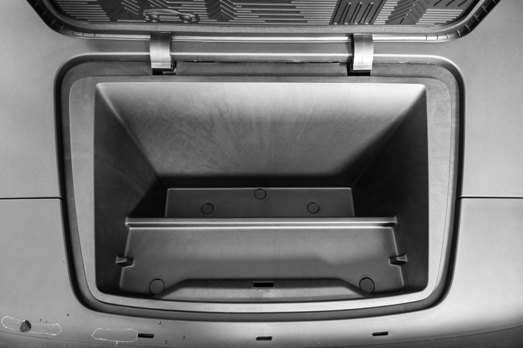 - Front load compartment - Provides smart storage of the warning triangle, tire repair kit, or washer fluid bottles.