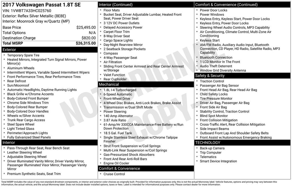 This 2017 Volkswagen Passat 1.8T SE is a compelling option for those seeking a well-equipped, stylish, and practical sedan. With its impressive features, efficient performance, and exceptional value, it's a vehicle that is sure to impress. We invite you to schedule a test drive and experience the Passat for yourself.